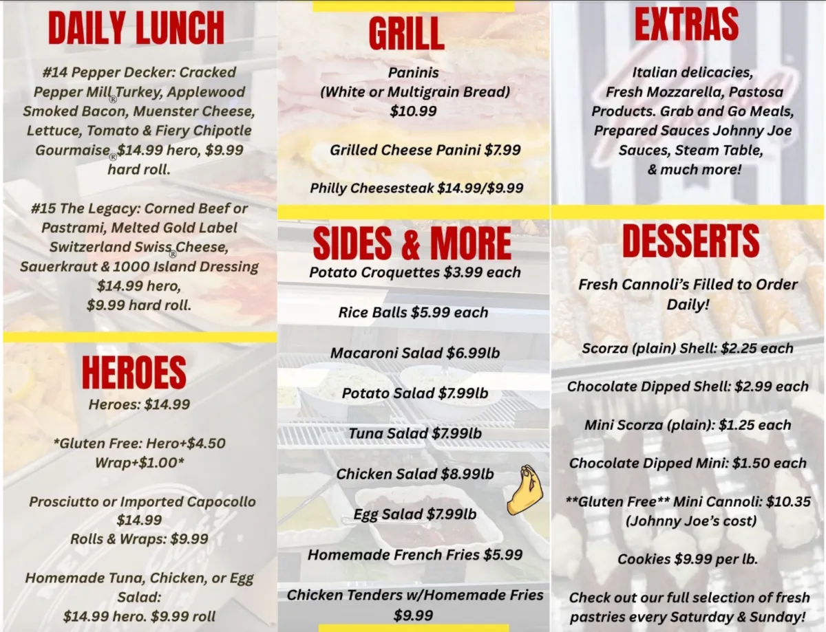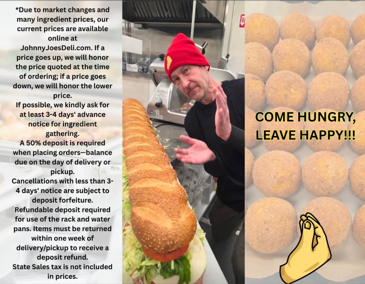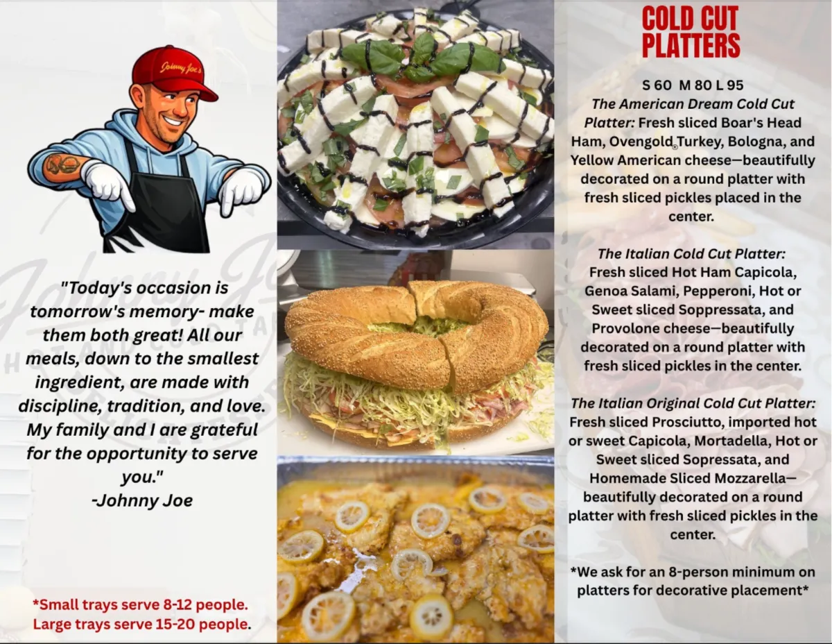 Johnny Joe’s is built the old way. Fresh sliced meats, hot and cold takeout made to order, and a menu that feels like home. From quick lunches to full family trays, everything we serve is made with real ingredients and real pride.