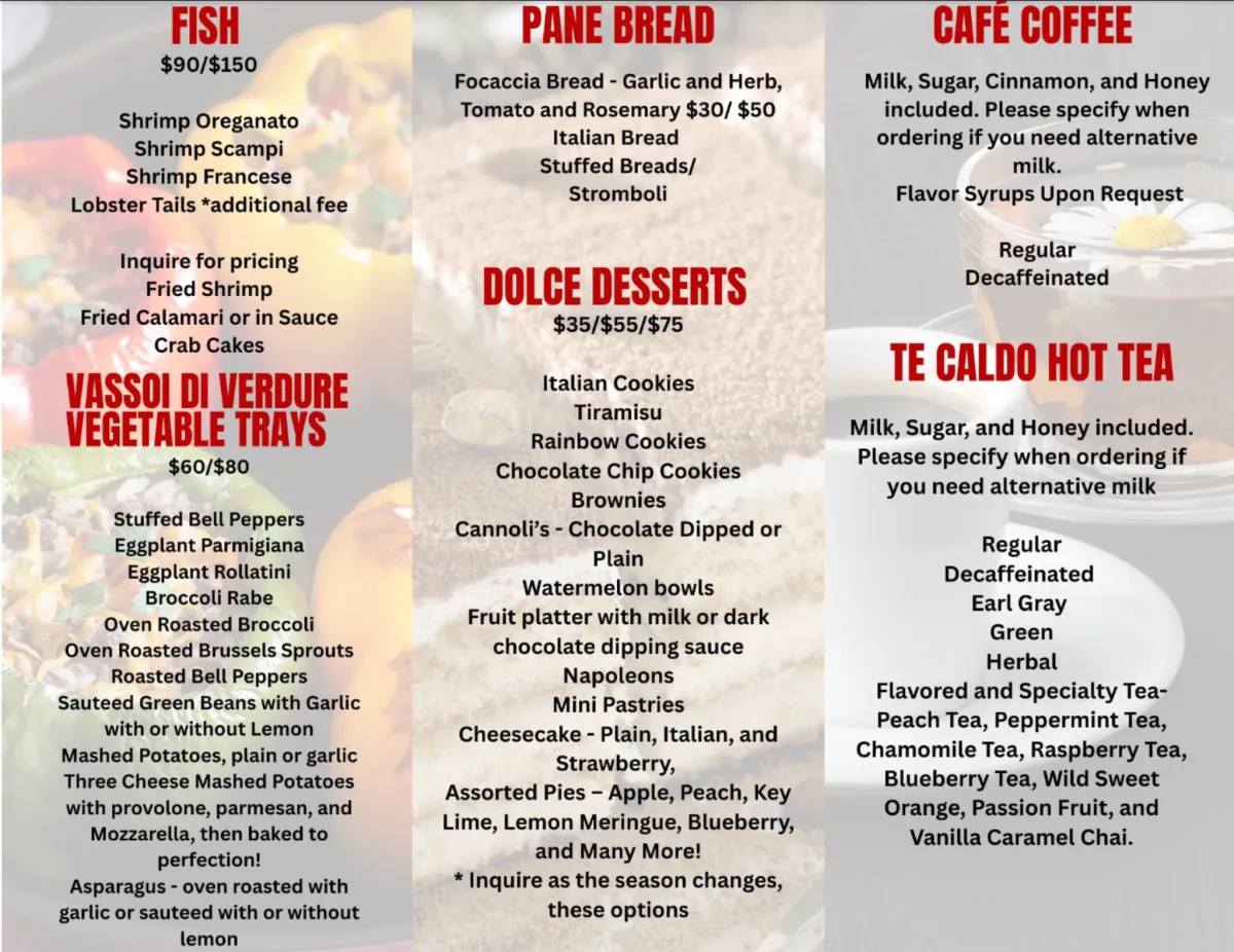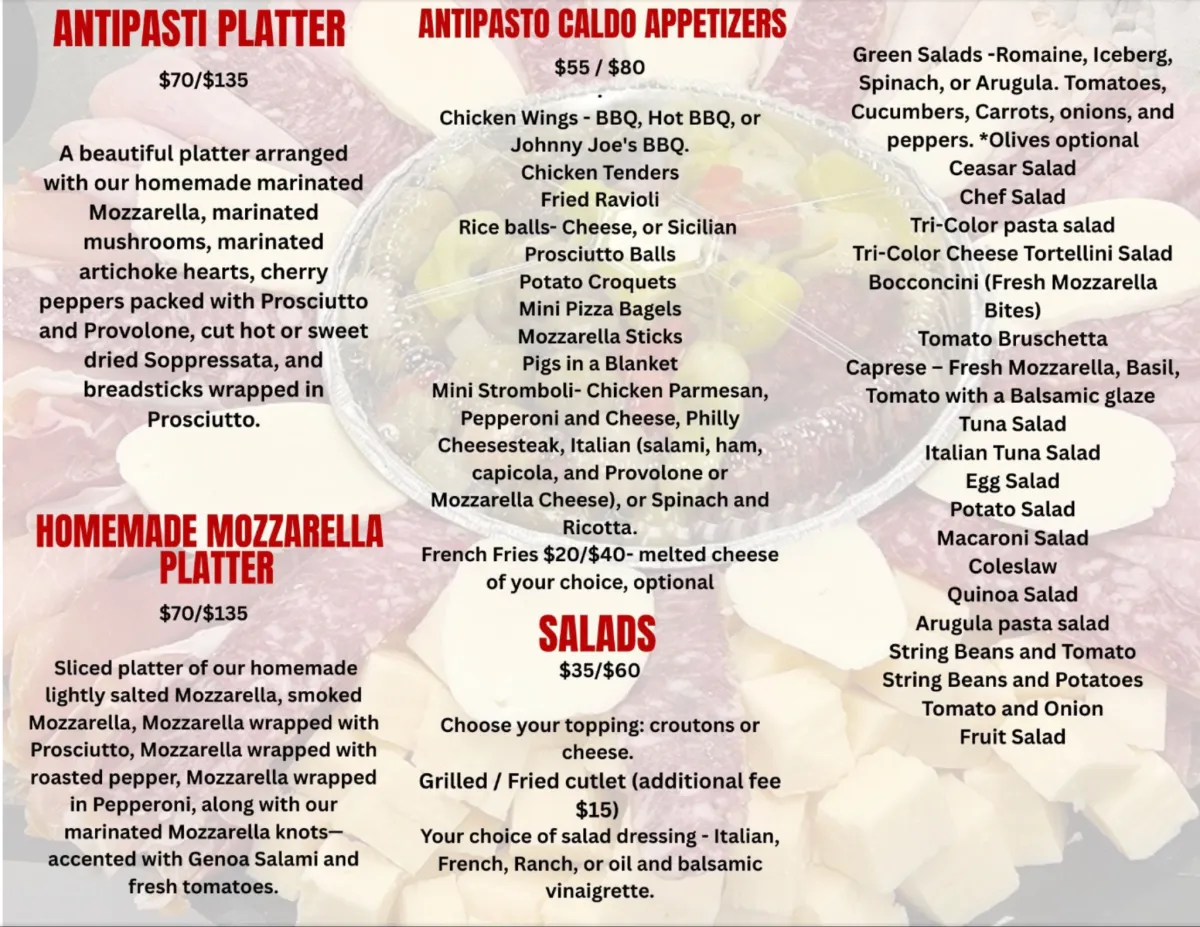 A wide variety of fresh-made catering favorites — click any section to view full size and explore our complete catering menu.